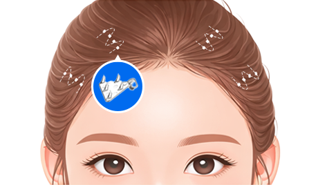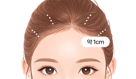헤어라인 안쪽 4포인트에 약 1cm 내외의 최소 절개를 진행하여, 흉터 부담을 줄이는 방향으로 접근합니다.